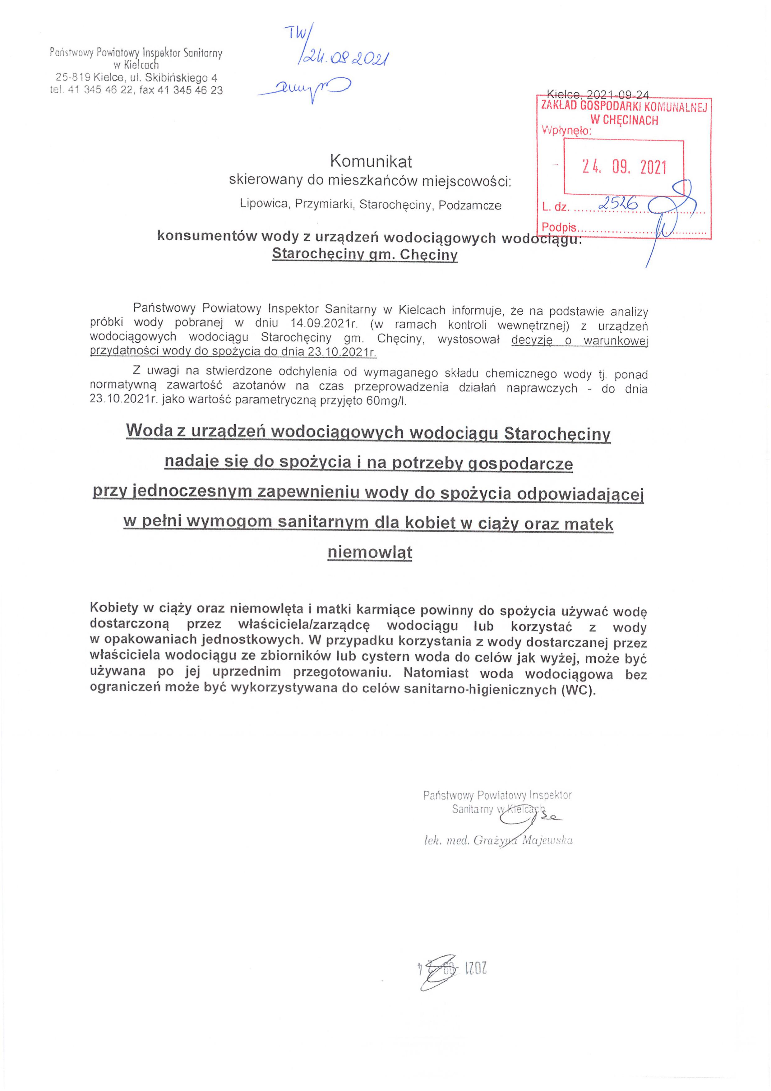 • Komunikat do konsumentów wody z ujęcia Starochęciny